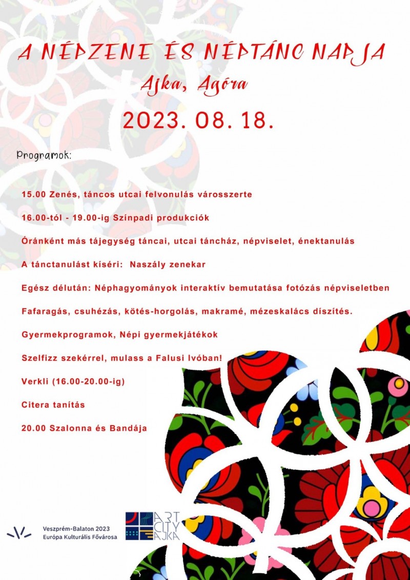 Utazás a hagyományok világába, utcai forgatag felvonulással és tánccal. A talpalávalóról pedig a Naszály zenekar és este 8 órától pedig a Szalonna és bandája gondoskodik. A látogatók megismerhetik a különböző tájegységek táncait és ruháit.